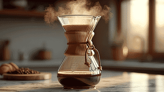 1941年発表の砂時計型ガラス製コーヒーメーカー。化学者シュラムボーム博士が実験器具から着想を得て開発。MoMA永久収蔵品として認定される機能美の極致。ボロシリケートガラスと天然木、革紐が織りなす有機的デザインは、80年以上変わらぬ姿で世界中のコーヒー愛好家を魅了し続ける。