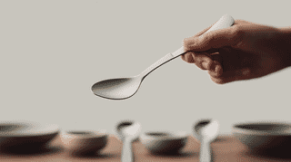 柳宗理が1974年に発表したステンレス製カトラリー。石膏模型を幾度も作り直し、手で握り口に運ぶ動作を検証して導き出された有機的なフォルムは、MoMA永久収蔵品に選定された日本プロダクトデザインの金字塔。
