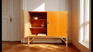 1951年発表。中国伝統家具に着想を得た「Chinaシリーズ」の代表作。真鍮の鍵が取手を兼ねる独創的な意匠と、簡潔で品格ある造形が特徴。FDB Møblerの民主的デザイン理念を体現した収納家具の傑作。
