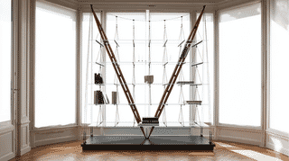 フランコ・アルビーニが1940年にミラノの自邸のために設計した革新的なブックケース。帆船の索具から着想を得たテンション構造により、ガラス棚板が宙に浮かぶような軽やかさを実現。MoMA永久収蔵品。